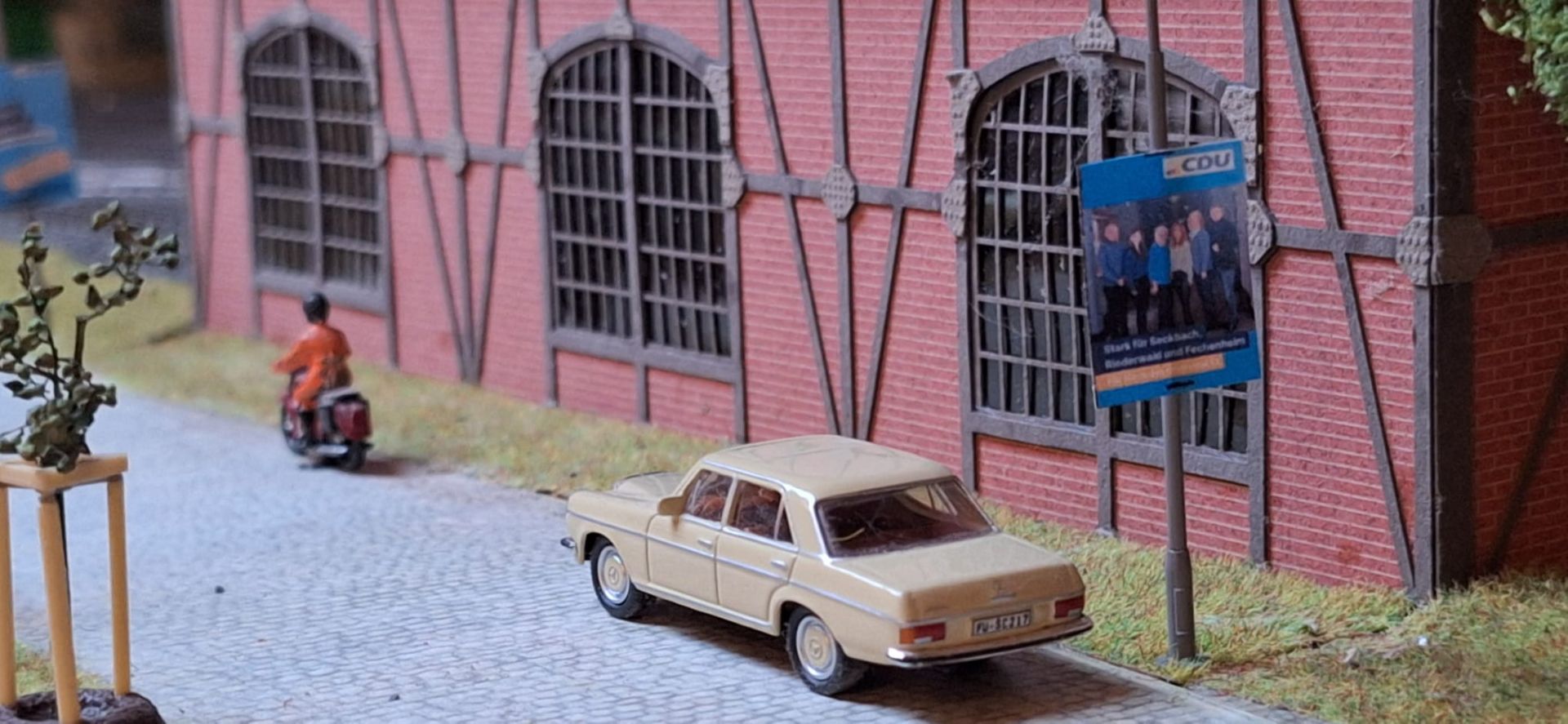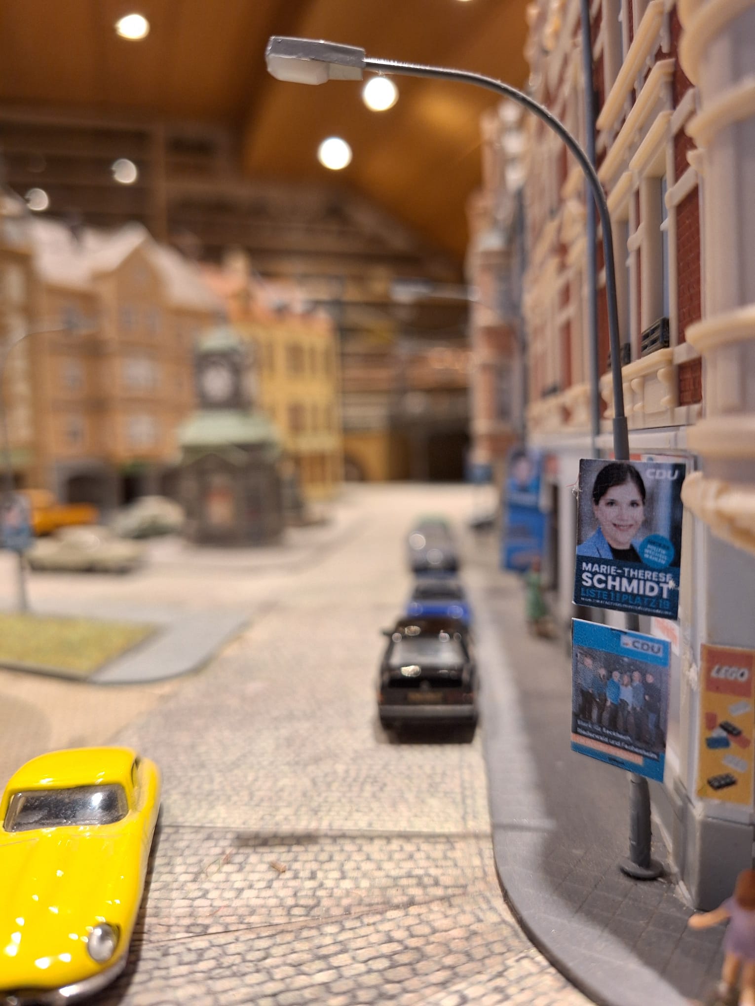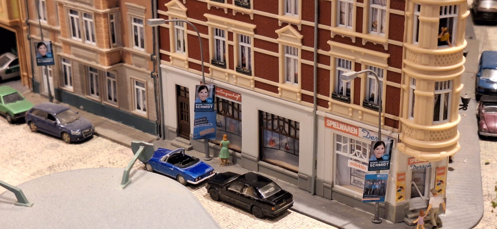 Besonders charmant: Die Plakate wirken im Miniatur-Straßenbild nicht wie Fremdkörper, sondern wie ein Detail, das man erst beim zweiten Blick wirklich würdigt. Genau das macht die Szene so komisch wie klug. Denn in der echten Stadt rauscht man oft an Laternen vorbei, ohne hinzuschauen. Im Modell aber bleibt das Auge hängen: „Moment mal – da hängt ja CDU-Wahlwerbung!“ Und plötzlich ist man mitten in der Frage, die Kommunalwahlkampf ausmacht: Was passiert eigentlich direkt vor der Haustür?